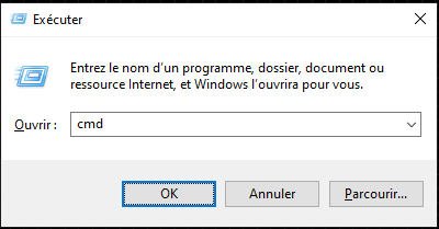 - Entrez cmd et appuyez sur OK