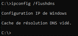 - Pour vider le cache DNS, tapez la commande ipconfig /flushdns et appuyez sur la touche Entrée.